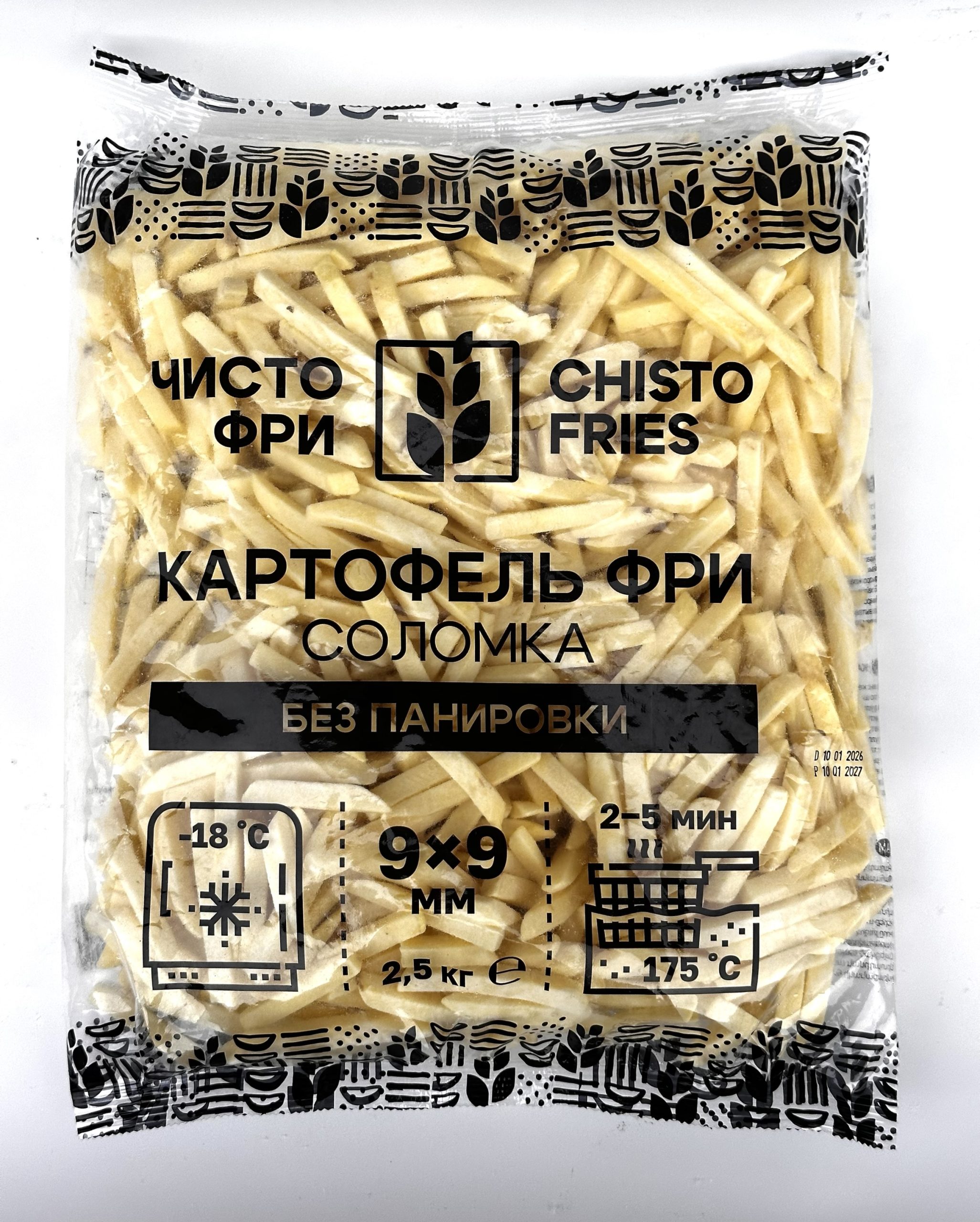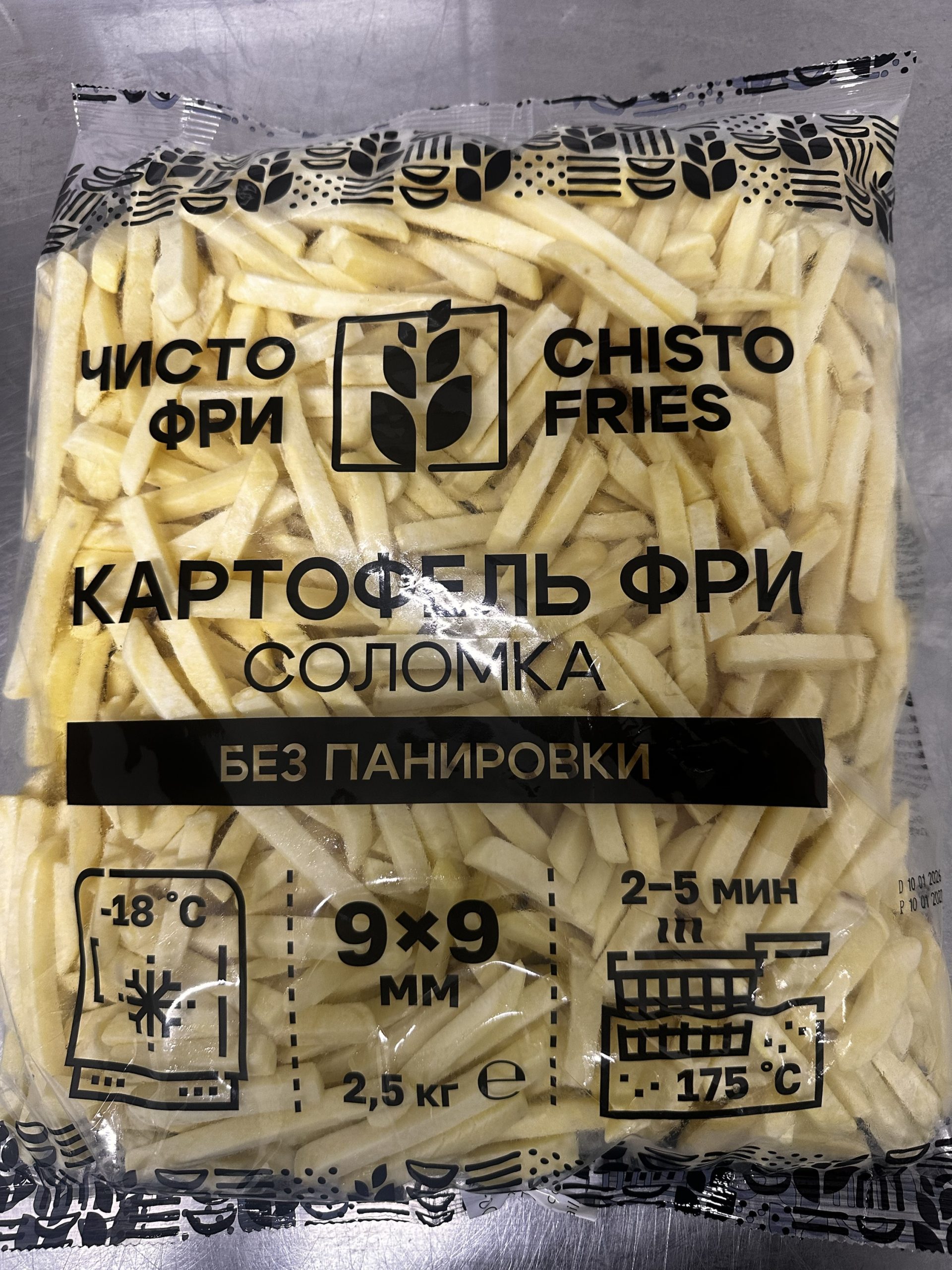 Картофель фри свежемороженый для приготовления всеми любовного гарнира или самостоятельного блюда в домашних условиях. Так же отлично подходит для жарки на сковороде, освобождая Вас от чистки и нарезки. Хорошая фракция 9х9 миллиметров.